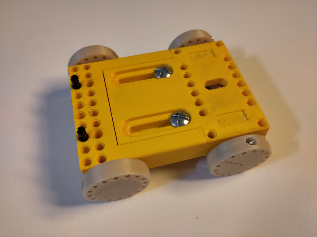 Ein simpler Trägerblock1 aus zwei verbundnen und verschiebbaren 3D-gedruckten Platten dient als Verbindungstück zwichen den elektronischen Komponenten den Motoren und kann weitere Module transportieren.